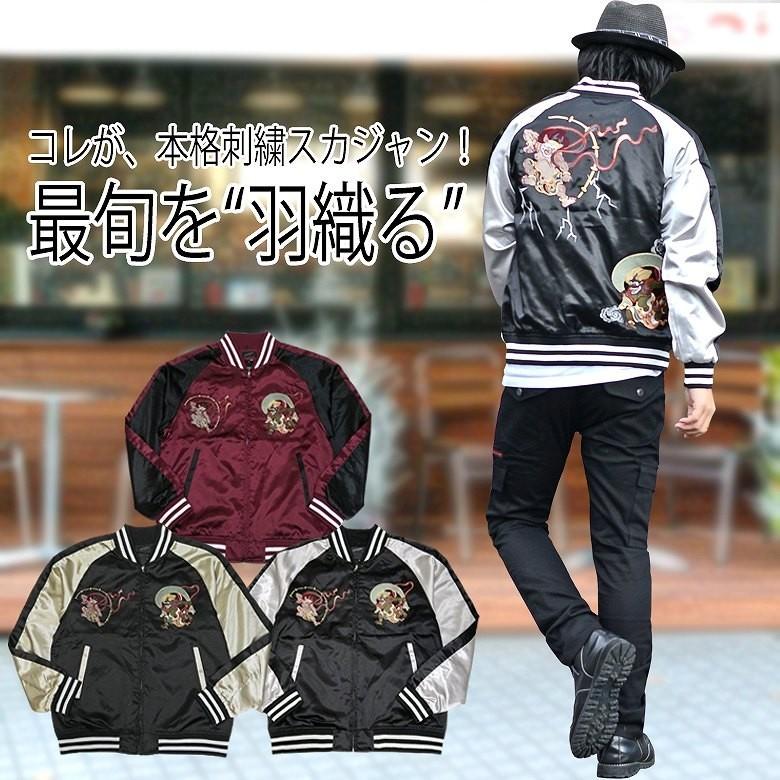 和柄刺繍サテンスカジャン メンズ ジャケット ジャンパー ブルゾン スーベニアジャケット 風神雷神 光沢 アウター ペアルック リンクコーデ Spruce Vasin 通販 Yahoo ショッピング